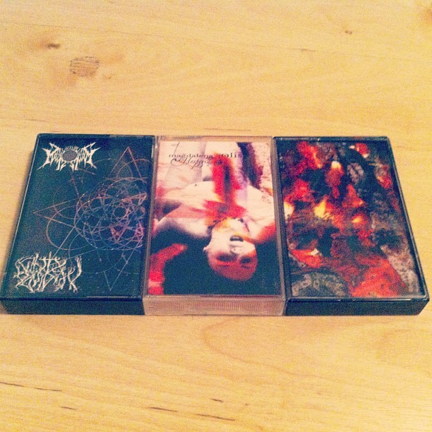 Picked up some more tapes: Wheels Within Wheels & Merkaba split tape, Magdalena Solis, and this Number None tape (Taken with instagram) Finna get hella drone noise ambient blackwitch whorey over hurr